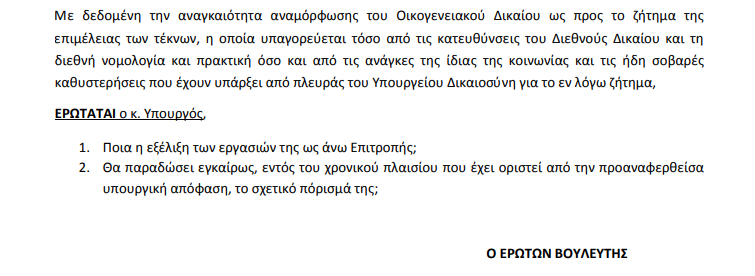 Ερωτηση του βουλευτή κ. Ν. Παναγιωτόπουλου για το πόρισμα της νομοπαρασκευαστικής επιτροπής
