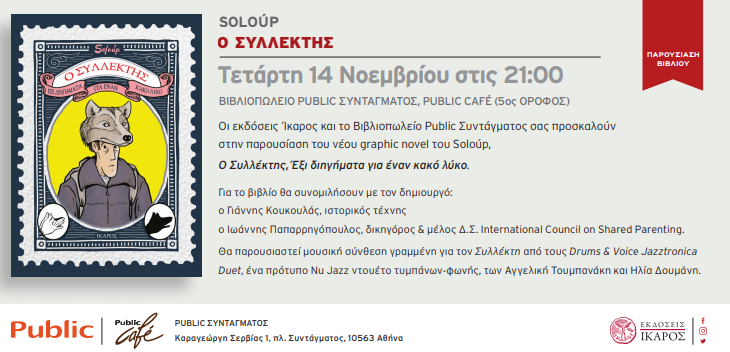 Την Τετάρτη 14 Νοεμβρίου 2018 στις 21:00 ο Σύλλογος Συνεπιμέλεια – Ελληνικό Συμβούλιο Κοινής Ανατροφής, καλεί τα μέλη και φίλους του στην παρουσίαση του συγκλονιστικού Novel Comic του γνωστού δημιουργού Soloup.