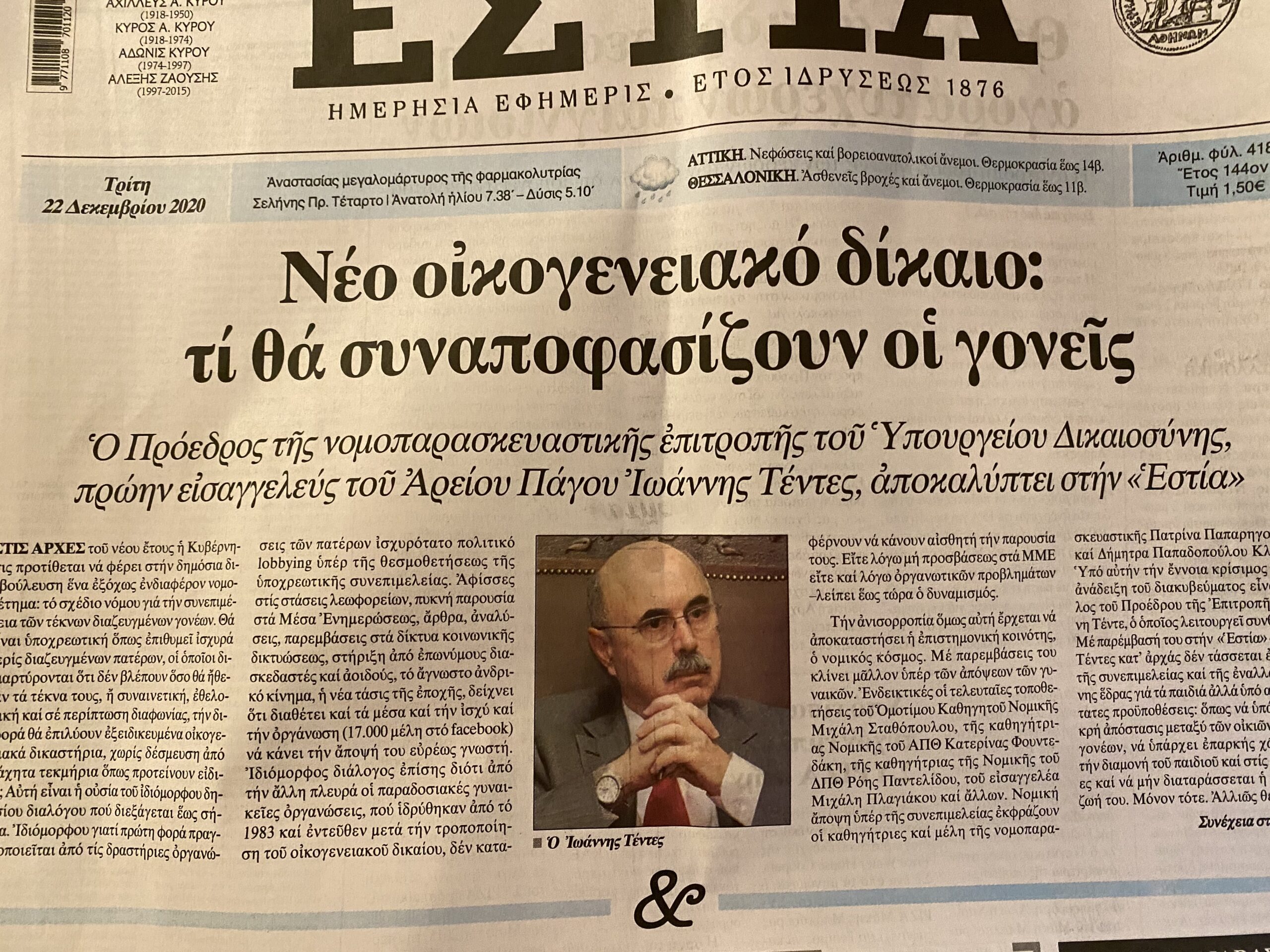 Πριν από 37 χρόνια η Εστία πολεμούσε σθεναρά την αλλαγή του οικογενειακού δικαίου. Σήμερα πολεμάει τη συνεπιμέλεια αλλά ταυτόχρονα προαναγγέλλει την επικράτησή της.