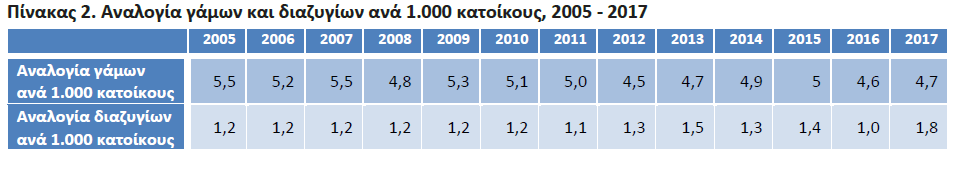 Δηλαδή αντιστοιχεί ένα διαζύγιο σε 2,5 περίπου γάμους.