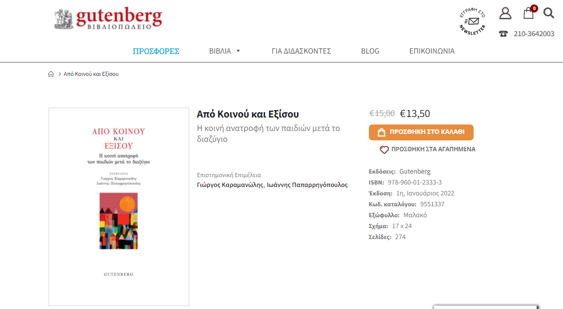 Θα ήθελα να με παρετε τηλ για να παραγγειλω το βιβλιο για την κοινη ανατροφη μεταξυ δυο γονιων Ευχαριστώ πολύ Καλο Βραδυ